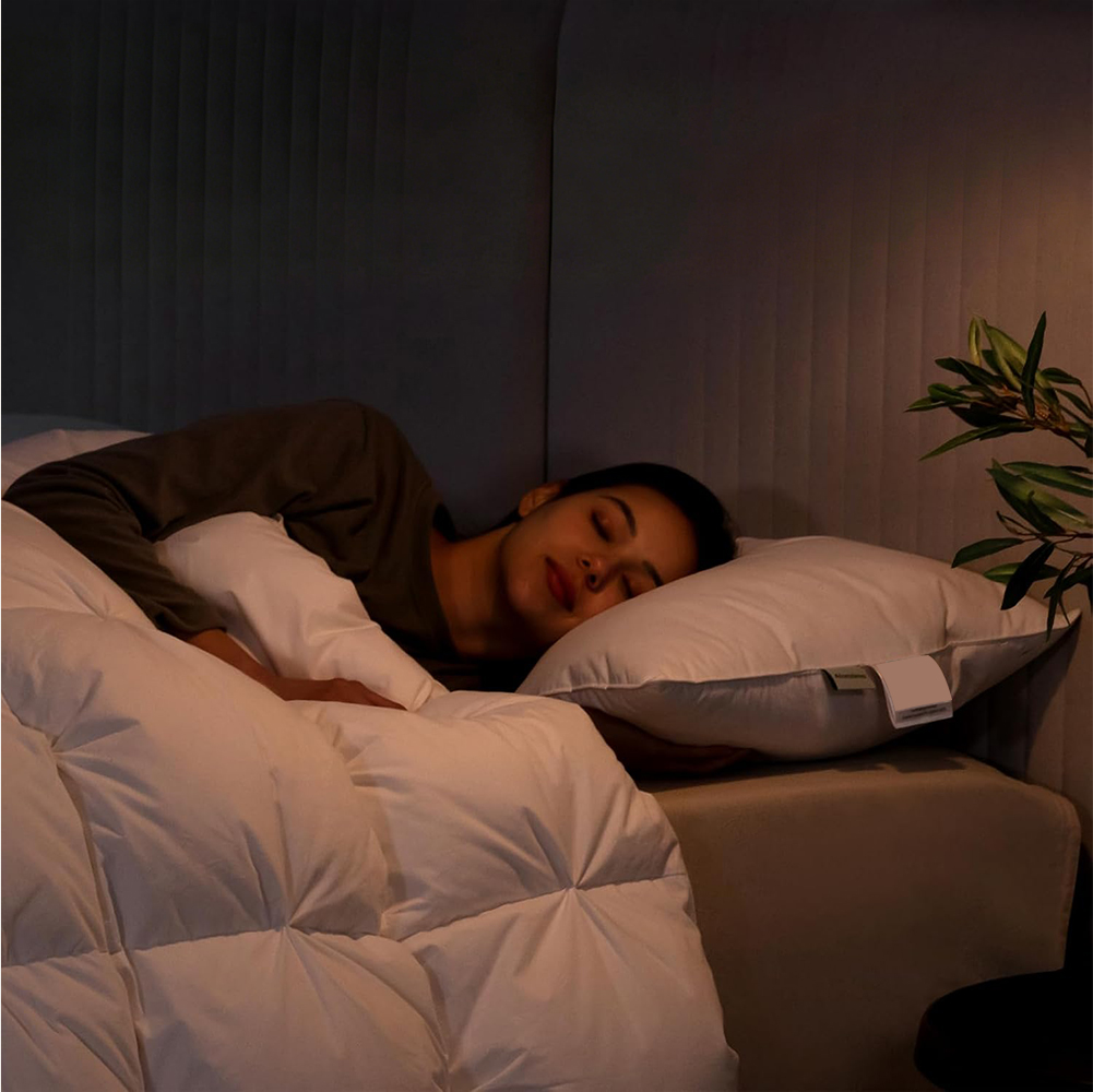 Soft and breathable white cover is skin friendly. The stuffing of down is carefully selected from premium and reliable raw materials which are easily bounced back to their original fluffiness and the pillow could hug your head, with a lightweight-yet-supportive feel.